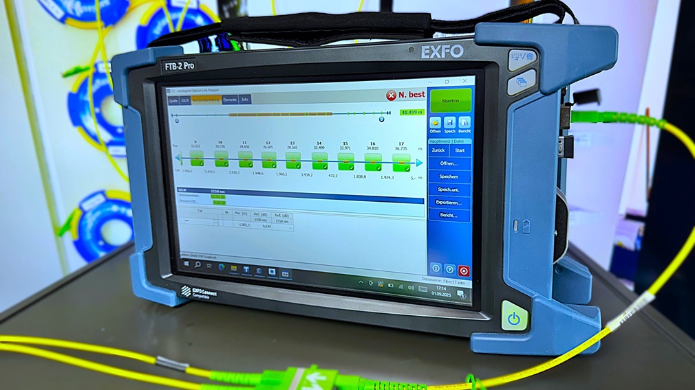 | 2.1.4. | Reflexionsmessung (OTDR) einseitig (nur Vorlauffaser) bei zwei Wellenlängen. Durchführung der Messung inklusive Erstellung des Messprotokolls (EXFO FTB-2x PRO mit FTBx-750C-SM3 OTDR). |