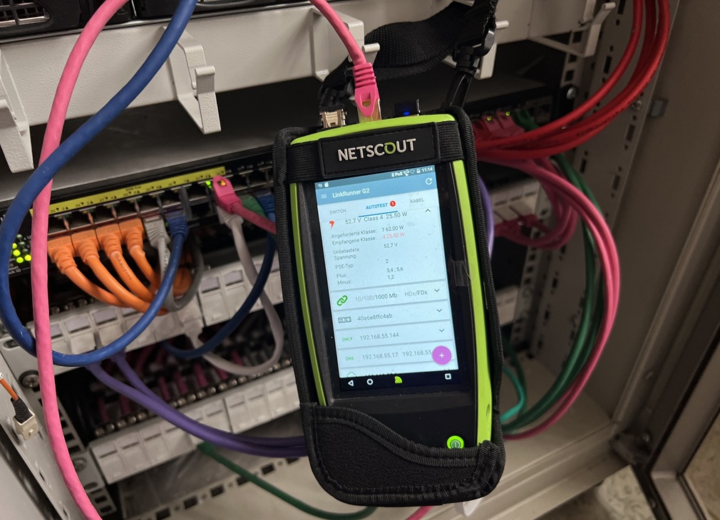 Eine Überprüfung der Verbindungen, ob die aktiven Netzwerkkomponenten die ausgewiesenen PoE Klassen tatsächlich einhalten, sorgt dafür, dass es beim Betrieb von Accesspoints und PoE IP Kameras keine Überraschungen gibt, wenn die Leistung der vom Hersteller angegebenen PoE Klasse tatsächlich einmal in vollem Umfang abgerufen wird.